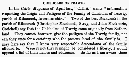 states the strength of the Chisholms at that period. "Chisholms - Their chief is