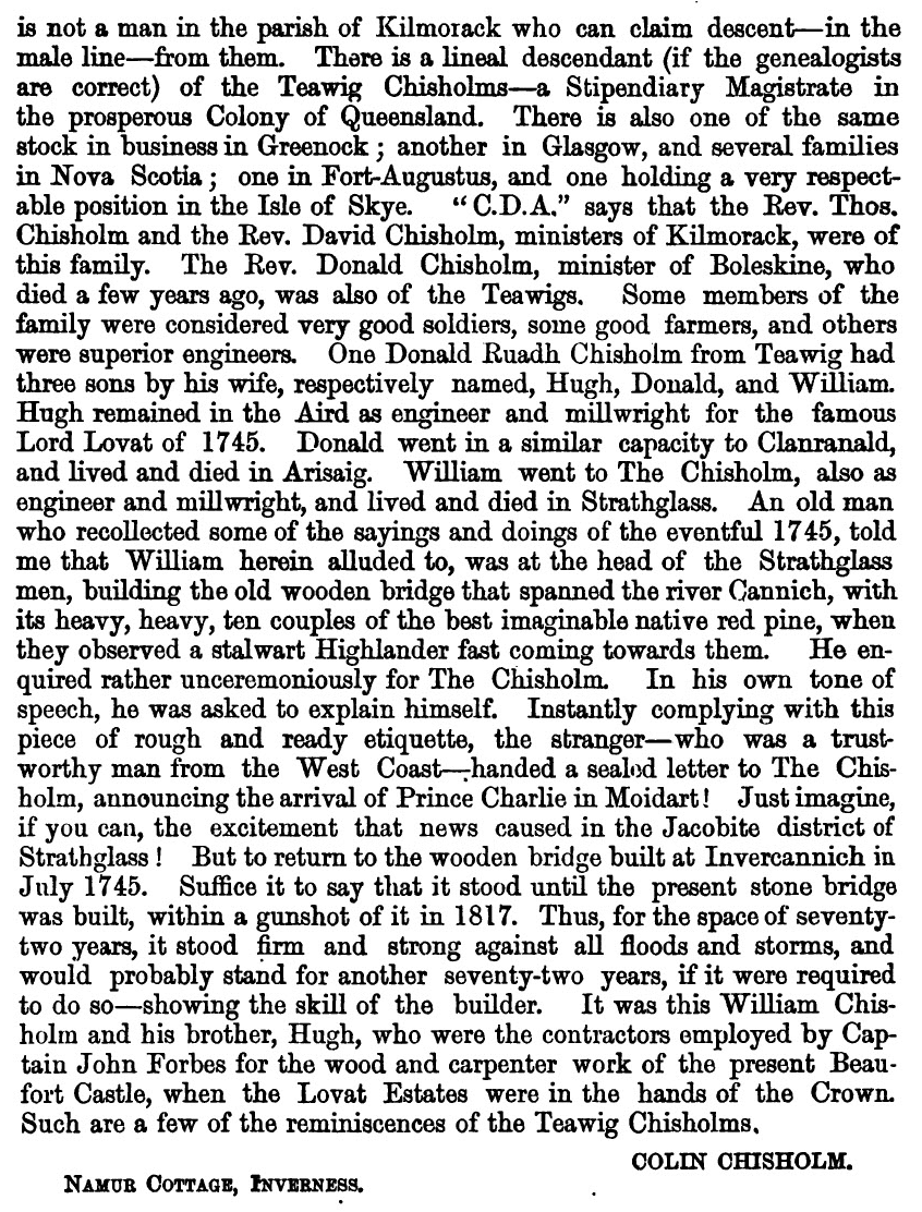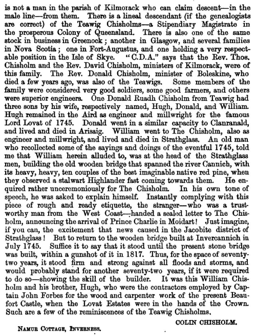 traditions of the clan. One of the Chisholm chiefs, it appears, carried