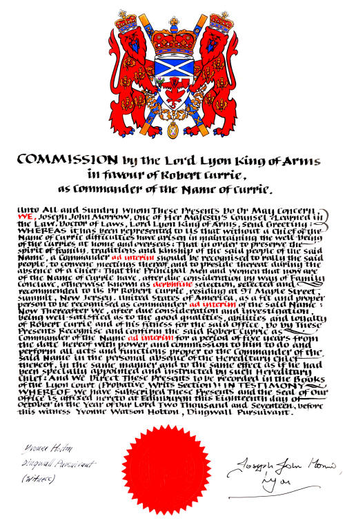 Commander of the Name and Arms of Currie
