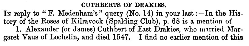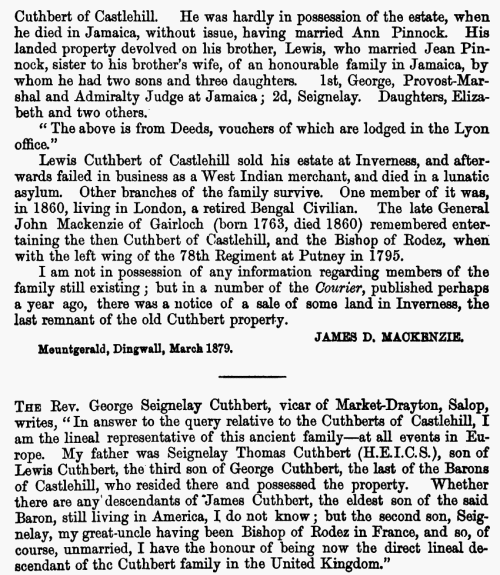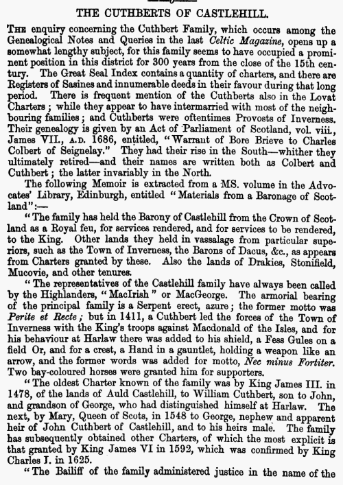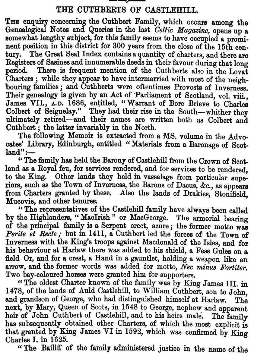 Drummond, entitled “The Cuthberts of Castlehill.” The paper was as follows