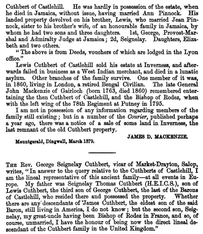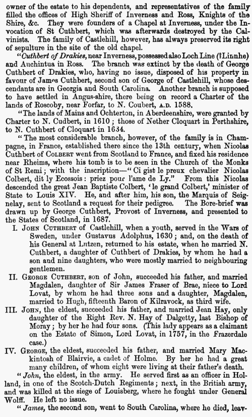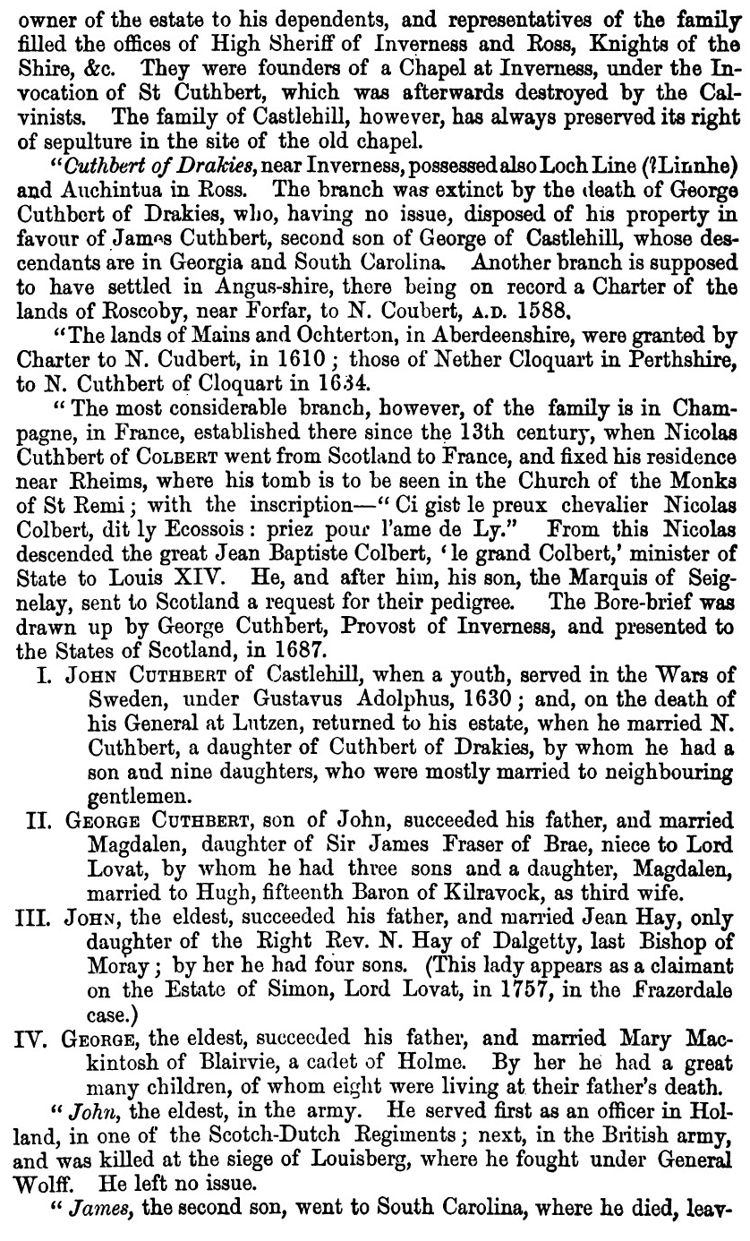 antiquity of the family of Cuthbert is sufficient to stand on its own