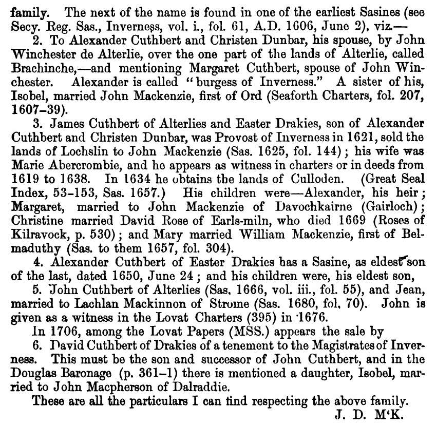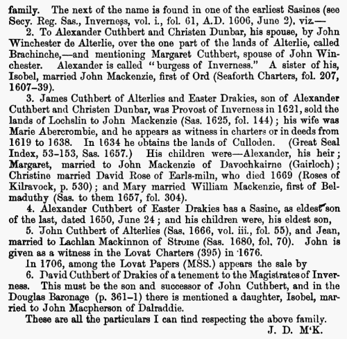 family, Alexander Cuthbert, who was Provost of Inverness. He possessed a