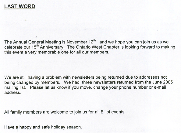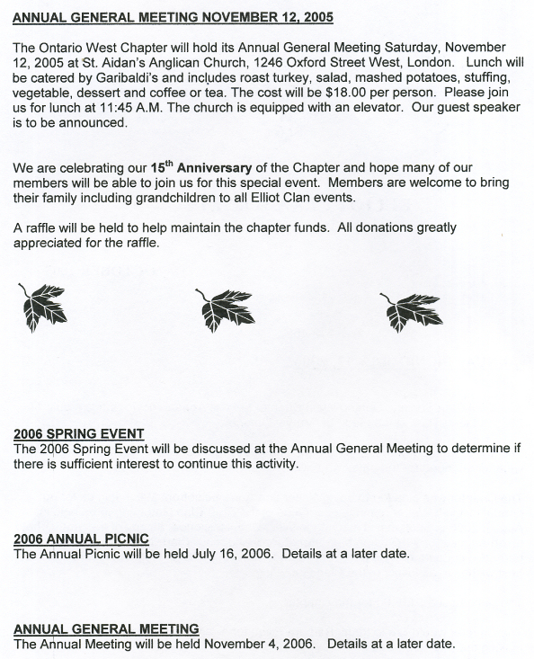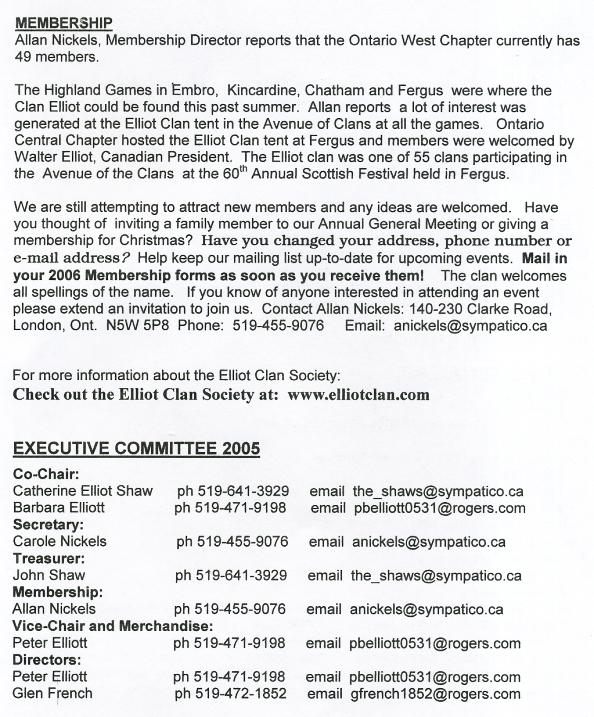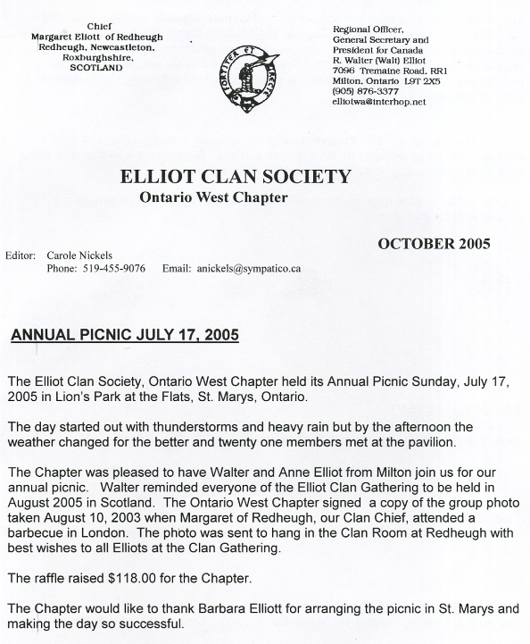 Elliot Clan Society, Ontario West Chapter