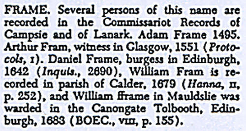 be illustrated, the Scottish Fram/Frame, the English Freme/Freame/Frame and