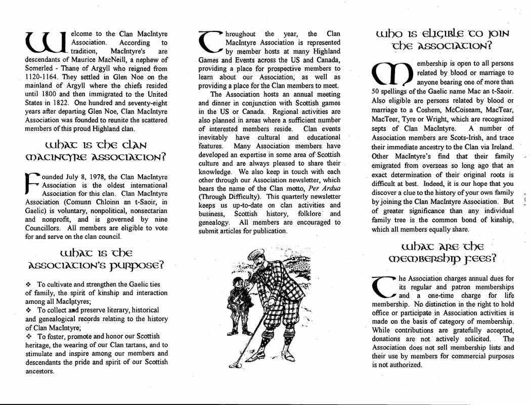 The Clan MacIntyre Association was founded in 1978 as an international, nonsectarian and