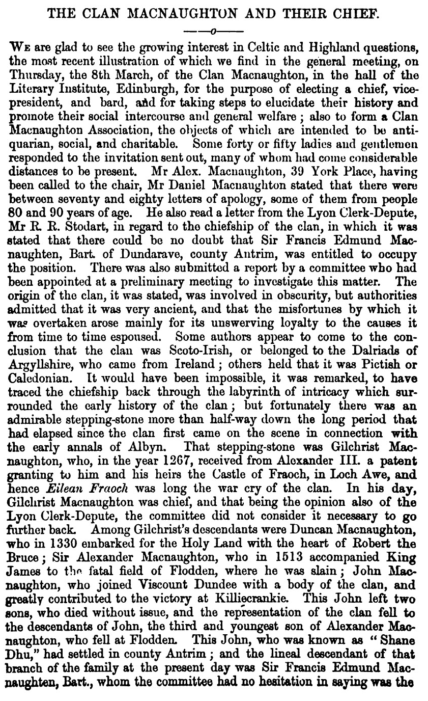 MacNaughton, who was chief in the time of James IV., was knighted by that