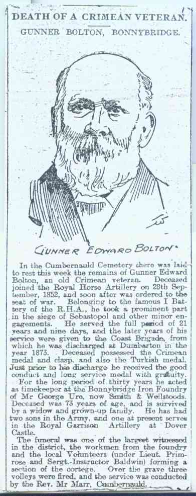 laid to rest this week the remains of Gunner Edward Bolton, an old Crimean