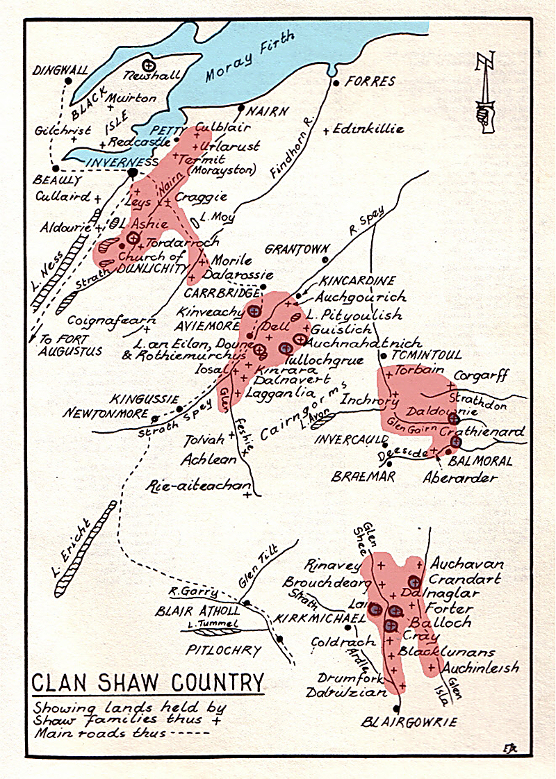 Got sent in a copy of this map which shows the lands of Clan Shaw.