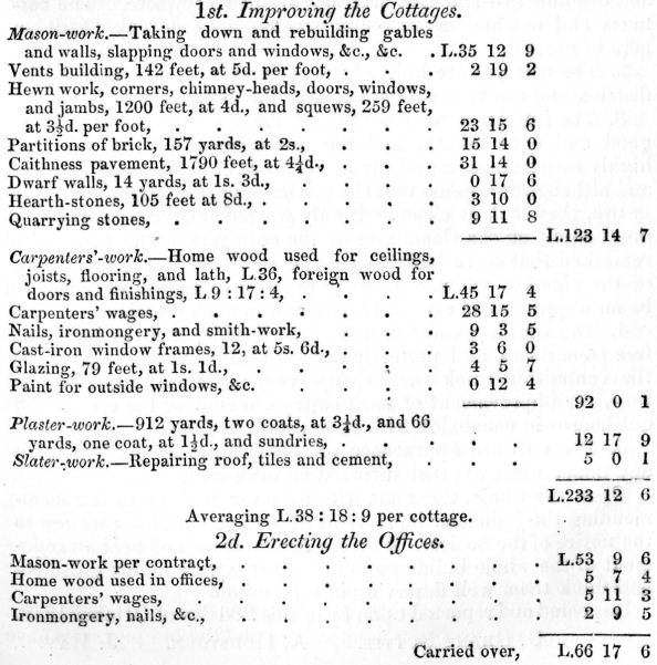 statement of the cost, 1st, of improving the cottages; 2d, of erecting the