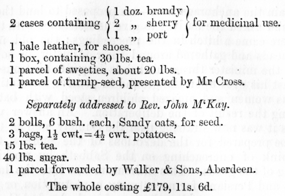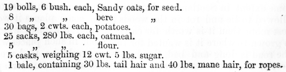 to the island provisions, seed, &c, for the inhabitants,—supplied partly