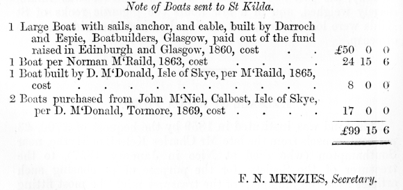 the inhabitants of St Kilda, and that a large sum (above £600) was