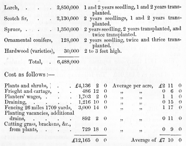 existed, 55 acres or thereby were planted with larch, Scotch fir, Norway