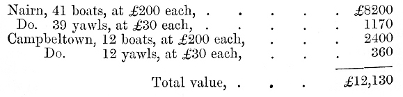 Average Value of Herring Boats and Nets.