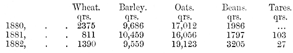 2786 acres wheat, 4846 barley and bere, oats 20,345, rye 70, beans 3389,