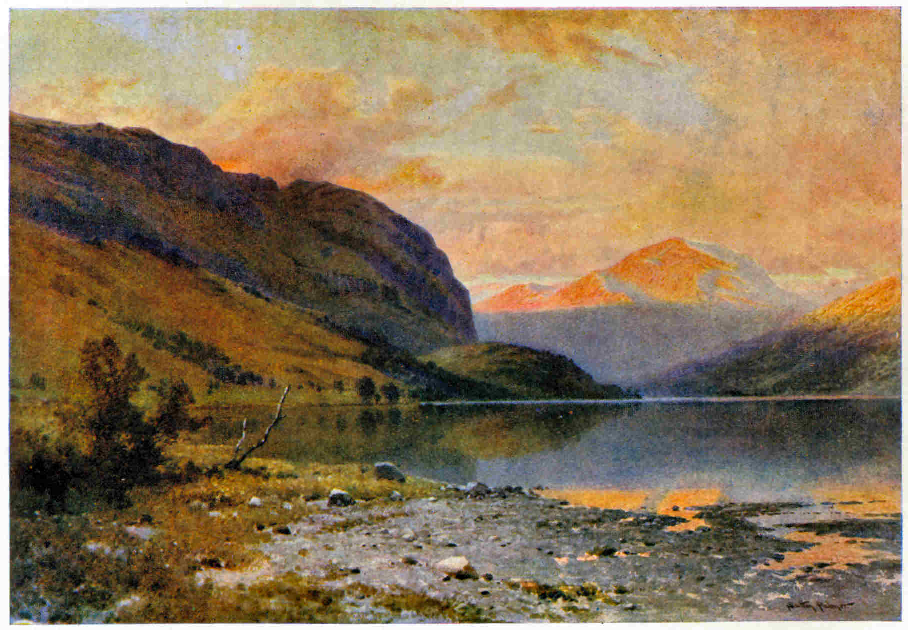 other side entwining lines of hills, with gleams of golden light breaking