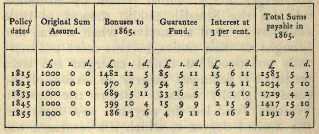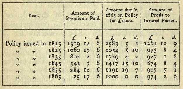 benefit actually due in 186 upon policies for £1000 taken out at the age