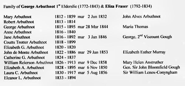 Family of George Arbuthnot 1st Elderslie (1772-1843) & Eliza Fraser (1792-1834)