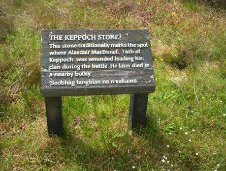 1. The Keppoch Stone where the mortally-wounded MacDonell of Keppoch lay. He was moved from the field to a nearby bothy where he died.