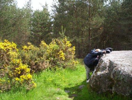 1. Marilyn hurriedly dismounting from Cumberland Stone to catch bus back to Inverness