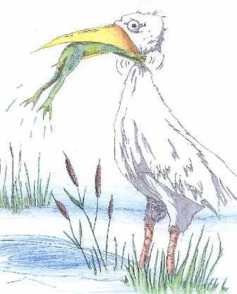 A heron was hungry an’ needin’ rae