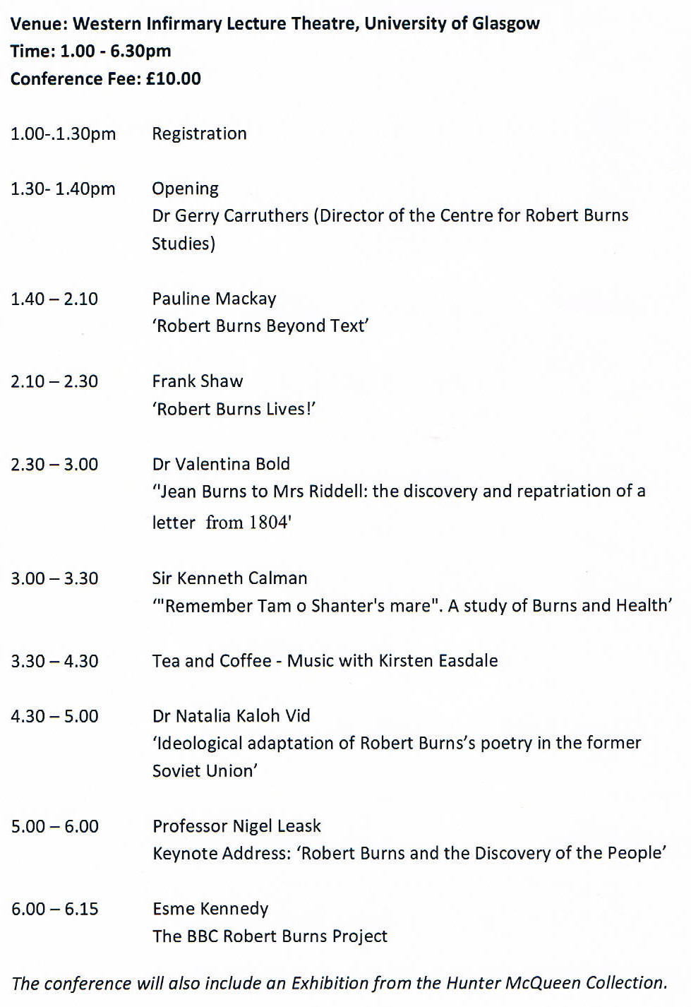 held a one-day conference entitled ‘Burns and Beyond’, a diverse and