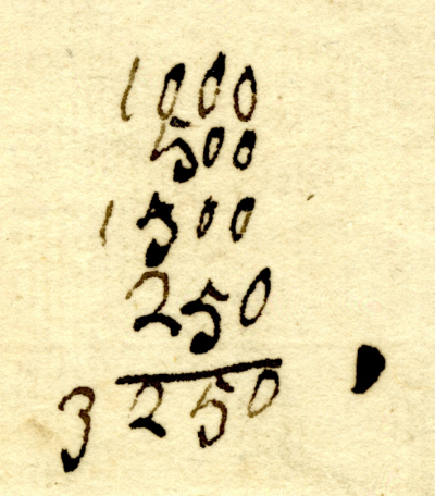 column: 1000, 500, 1500, 250, added up to a total of 3250.