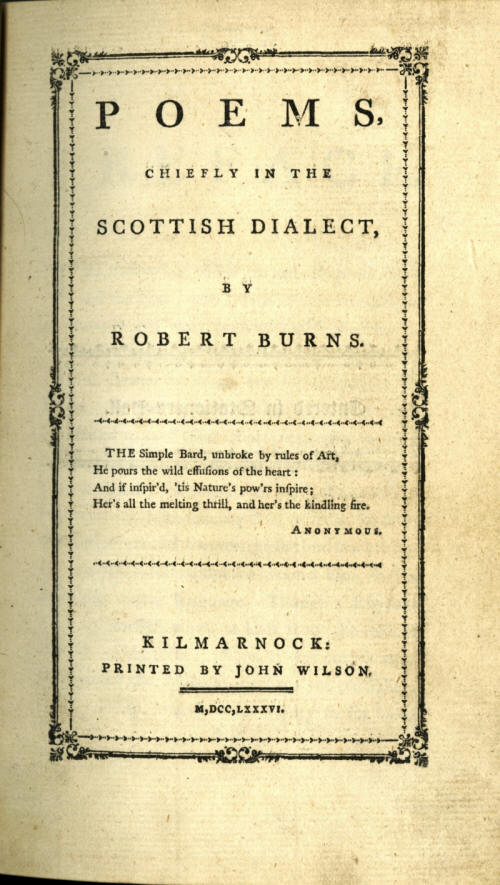 Scottish Dialect (Kilmarnock: Printed by John Wilson, 1786).