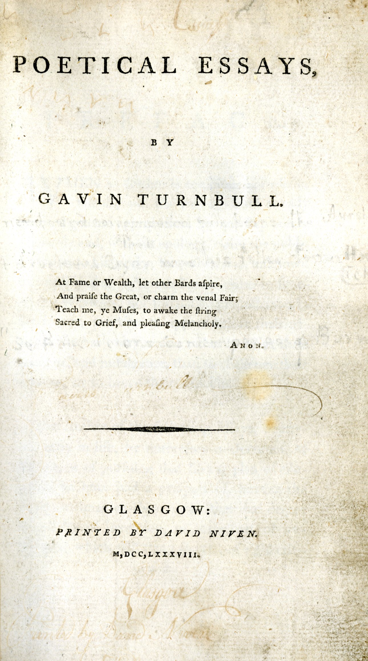 Turnbull, Gavin, Poetical Essays (Glasgow: David Niven, 1788; repr.