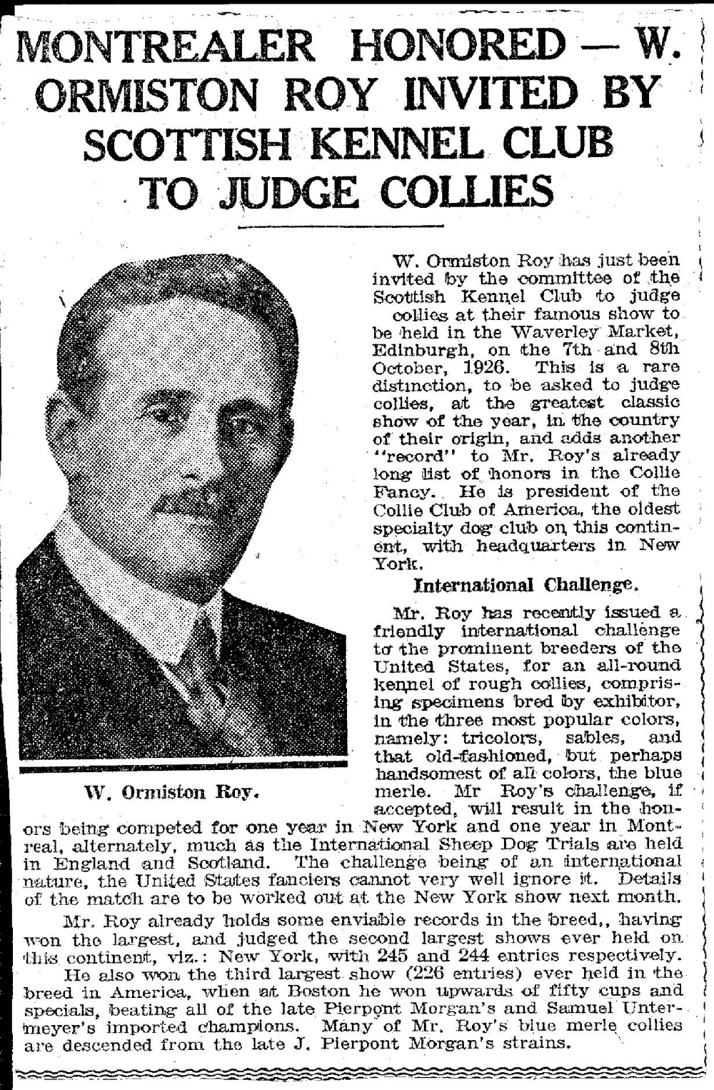 Karsh. Though friends called him Willie, he signed himself W. Ormiston Roy;