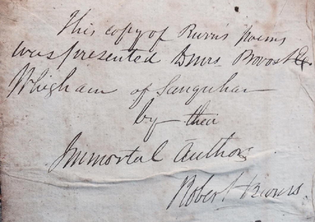 inscribed in a later hand as presented by Burns to Edward Whigham, innkeeper and