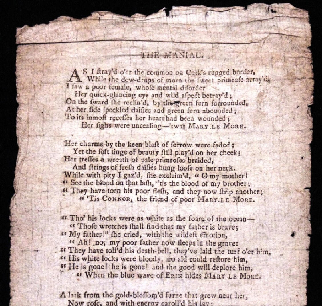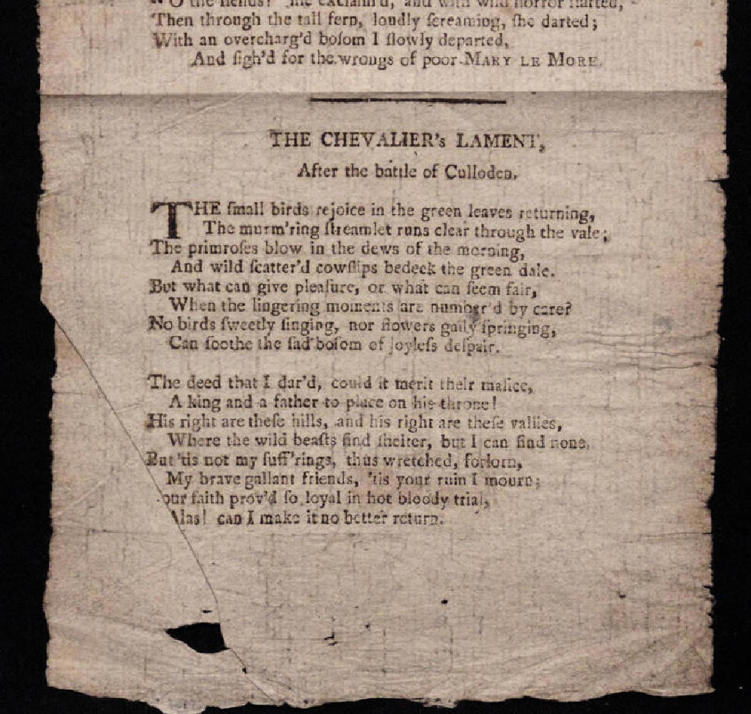 THE CHEVALIER'S LAMENT. N.d, n.p, circa 1799. Broadside, also featuring a poem