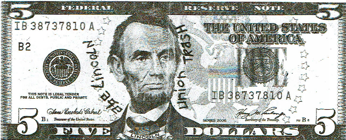 Union TRASH” on that five-dollar bill – he was one of America’s greatest