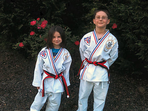 Stirling after receiving their black and red belt in tae kwon do.