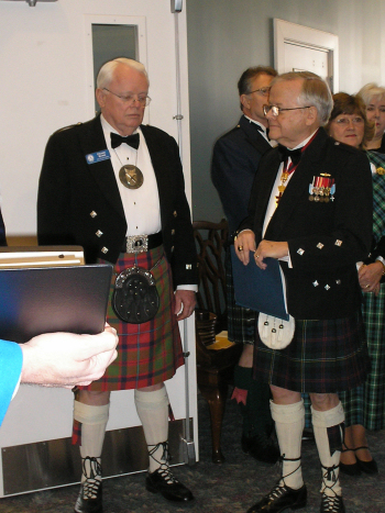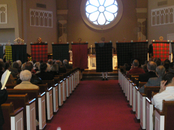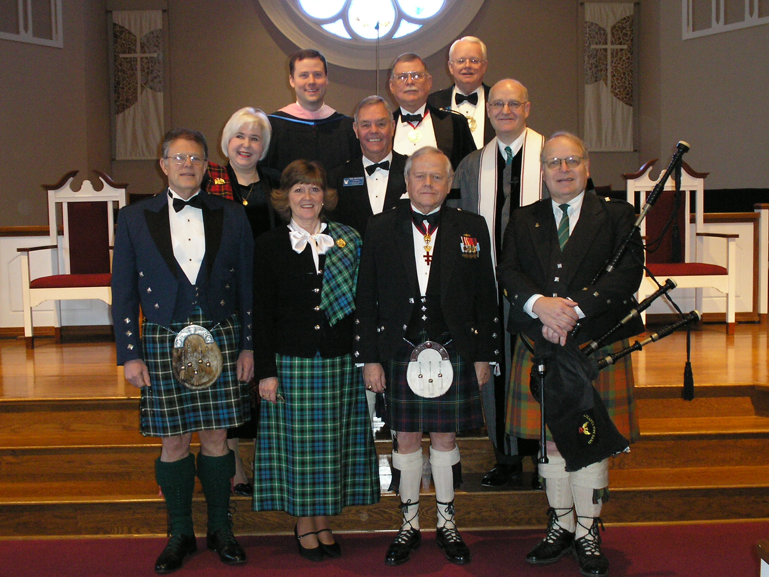 dressed in their clan tartans. The minister, Dr. Joel Alvis, spoke