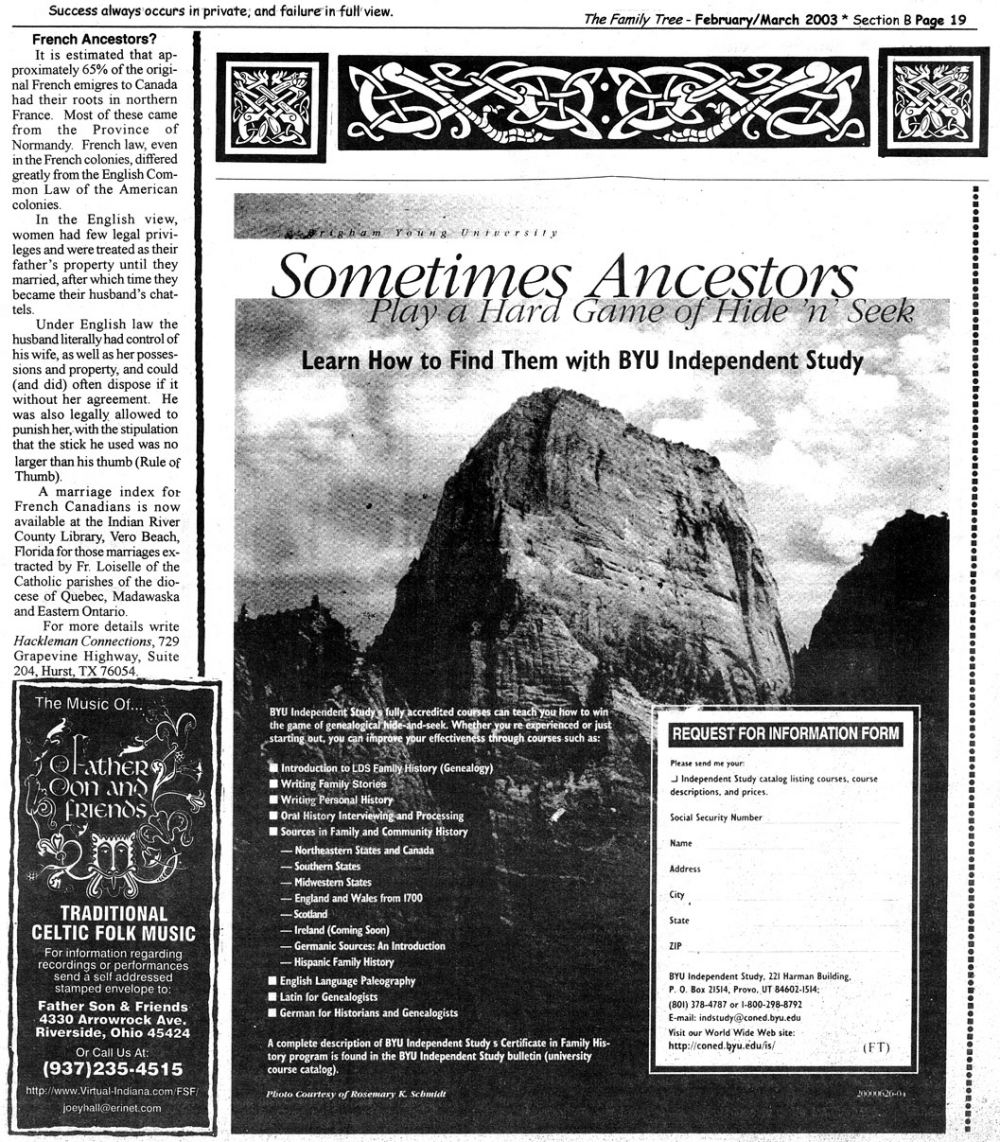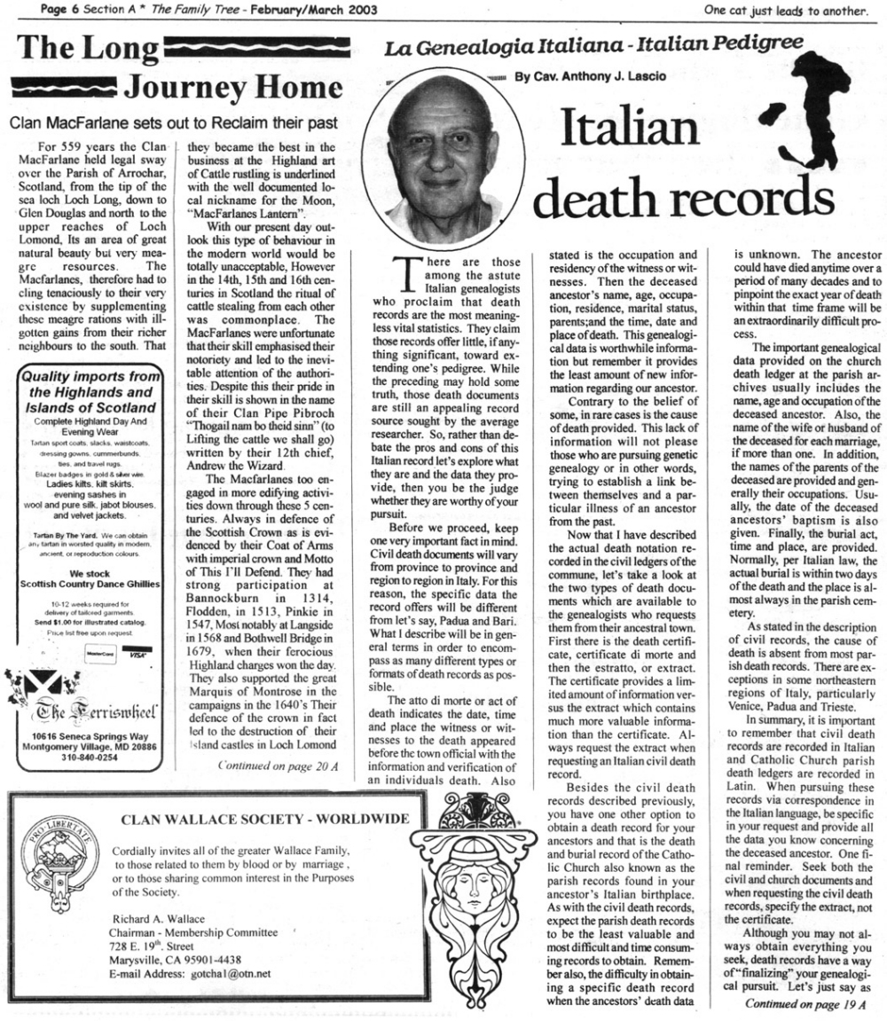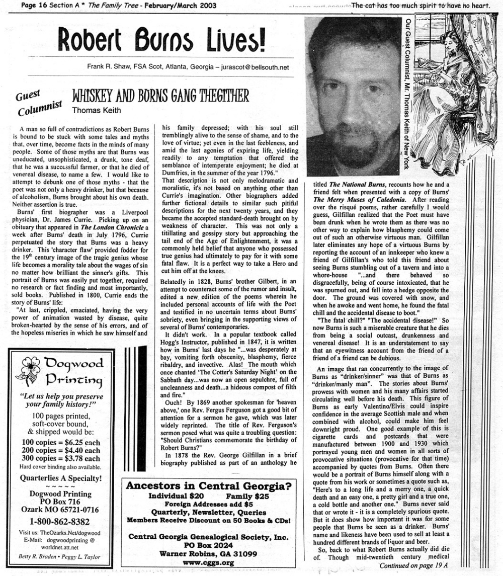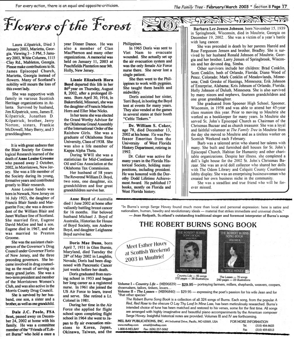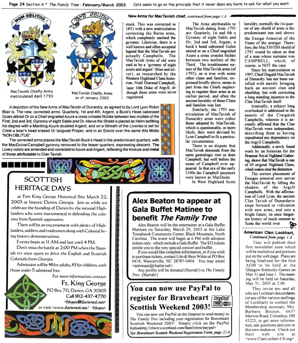 Skeleton Hunt: You get a chance each month to win a prize by finding the Skeleton hidden in the pages of the Family Tree. It's mighty easy to take part in all this fun. Just look very carefully at our pages and find the cute little fella trying to escape from his closet. Then send us a postcard. It might be a good idea, since two of our prizes need to know your Clan affiliation, to add that to your postcard... and then address it to: Skeleton, PO Box 2828, Moultrie, GA 31776-2828.