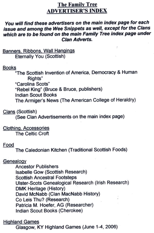 Family Tree Advertisers Index