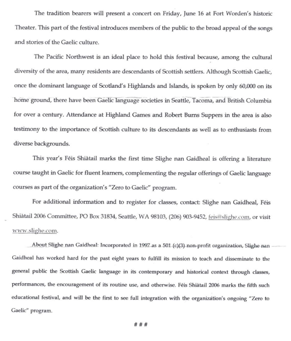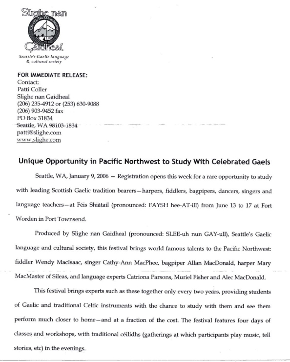 Opportunity to study with Celebrated Gaels