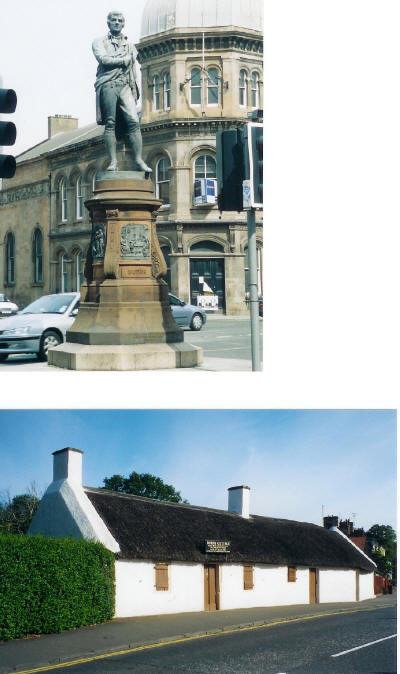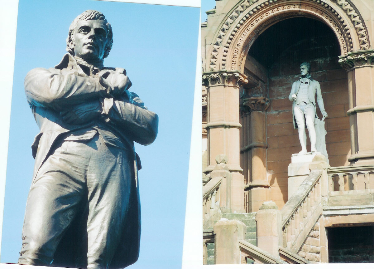 Right: In Dumfries, the place of Robert Burns' death. This statue honors him