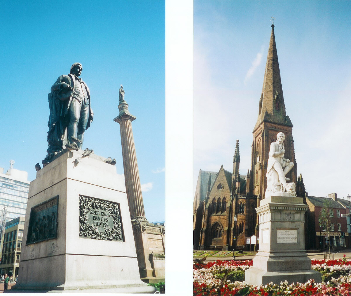 Right photo: Burns Monument in Kilmarnock, Scotland. This monument has