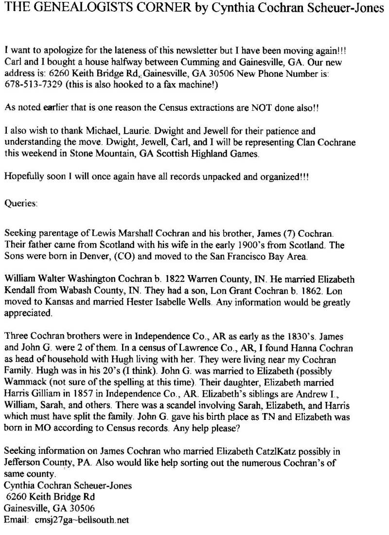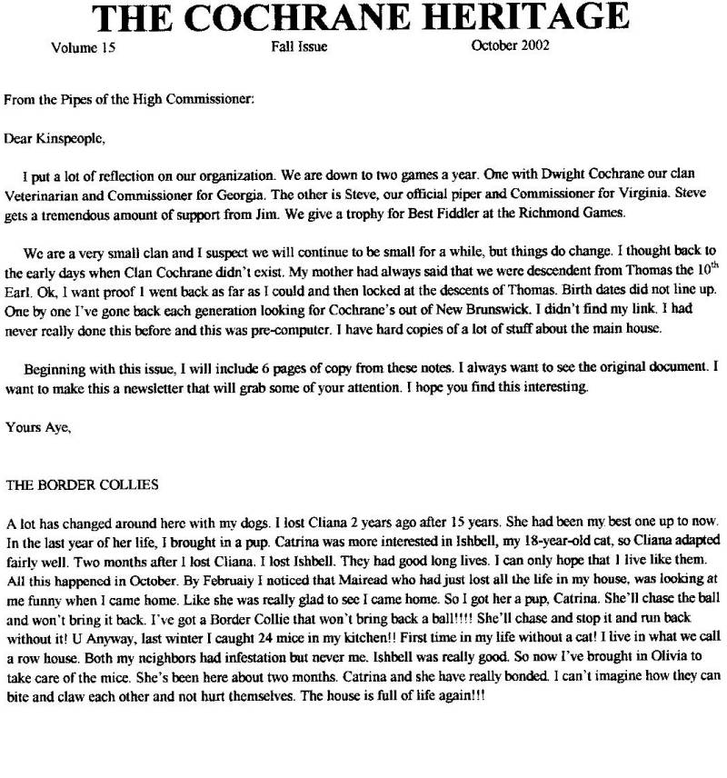 Clan Cochrane Newsletter, October 2002