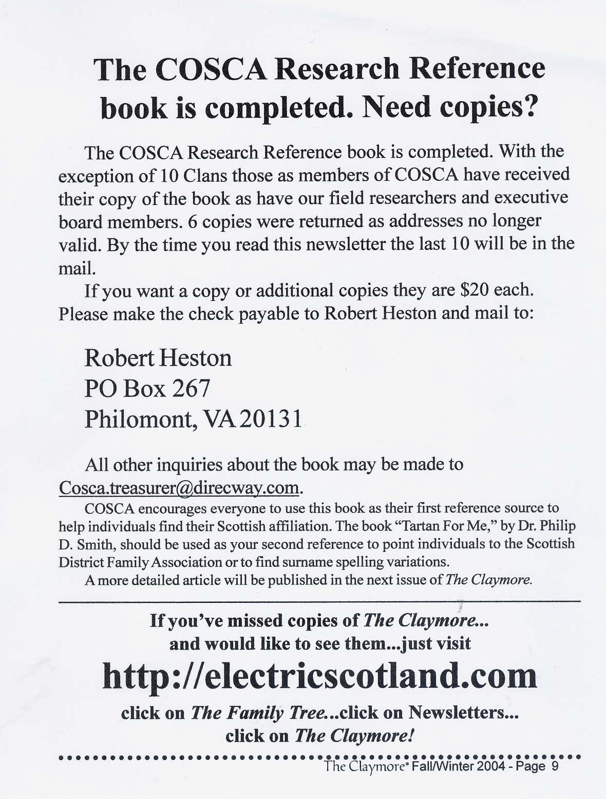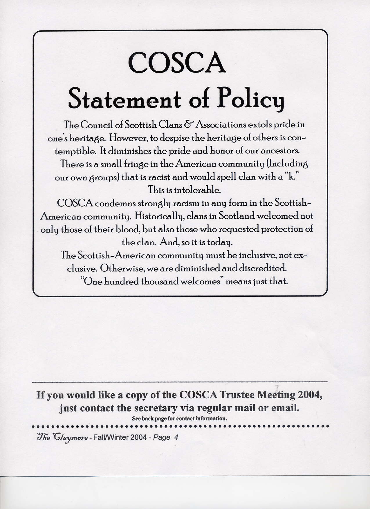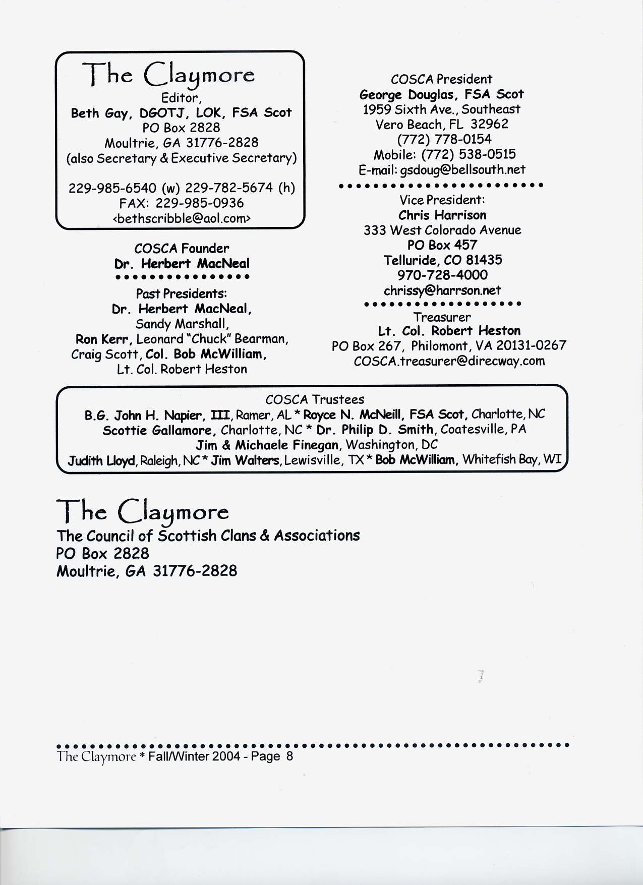 Scottish Clans & Associations) http://www.cosca.net Fall/Winter 2004
