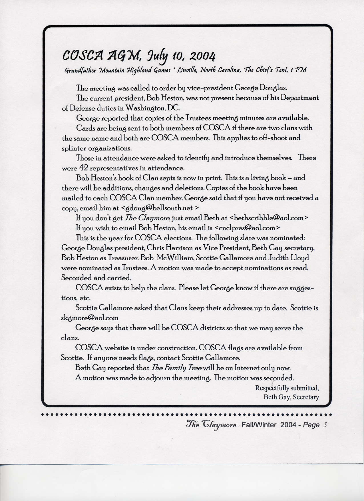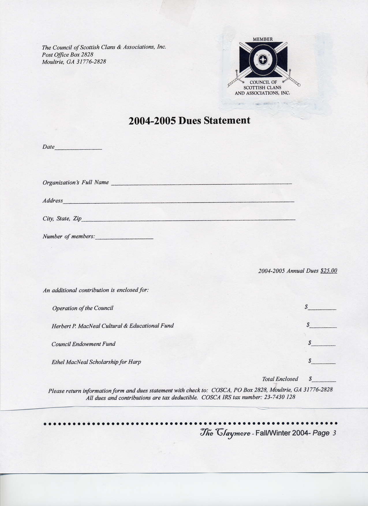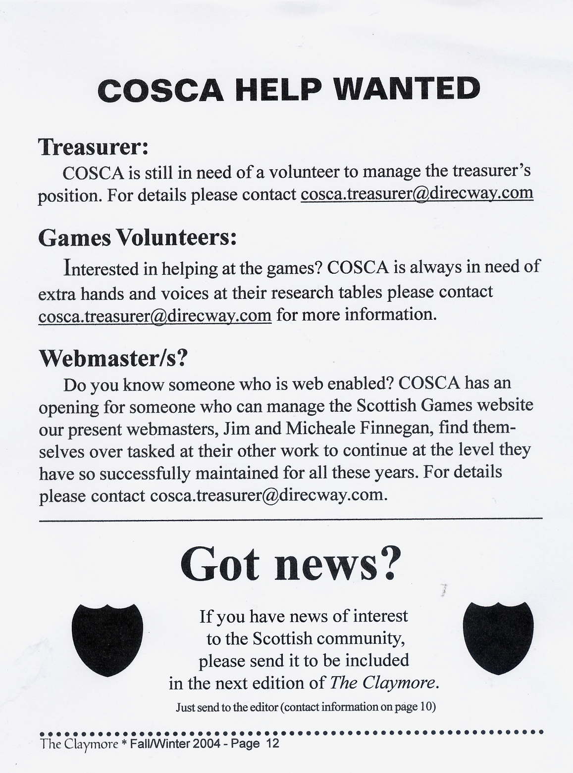Scottish Clans & Associations) http://www.cosca.net Fall/Winter 2004