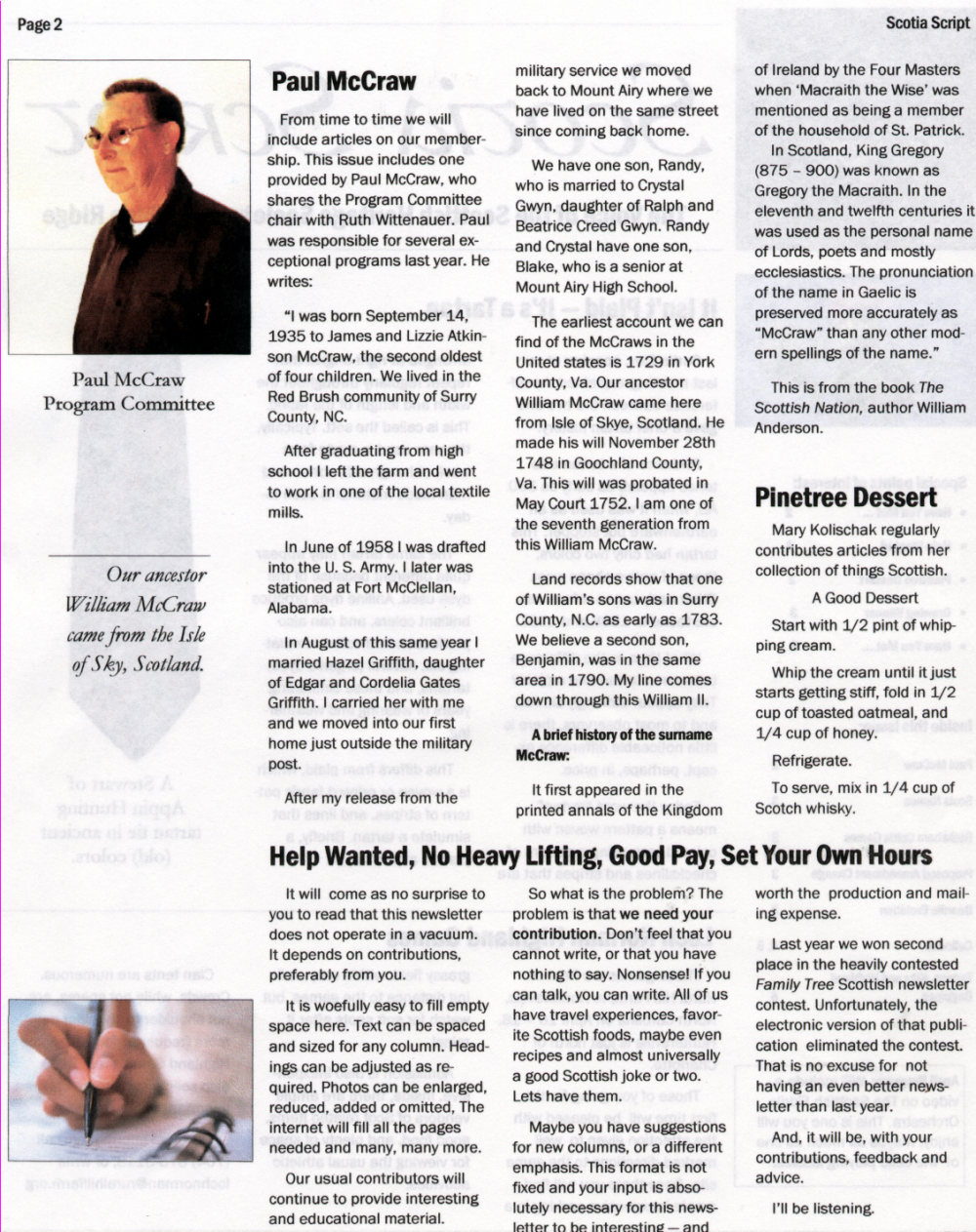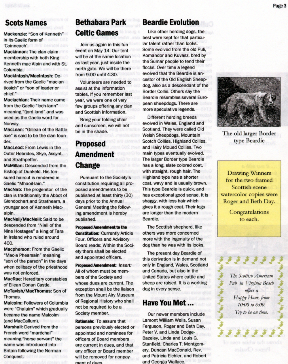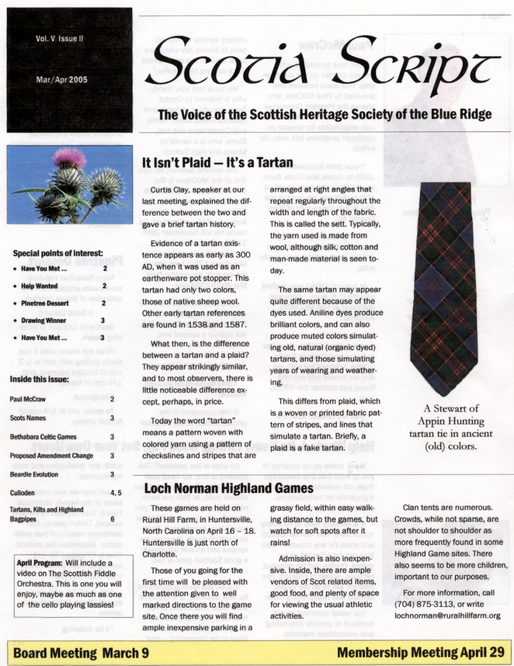 The Voice of the Scottish Heritage Society of the Blue Ridge