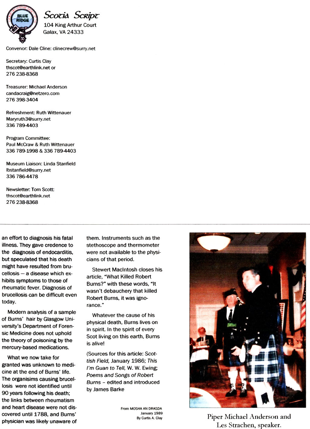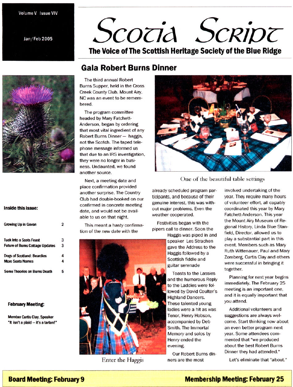 The Voice of the Scottish Heritage Society of the Blue Ridge