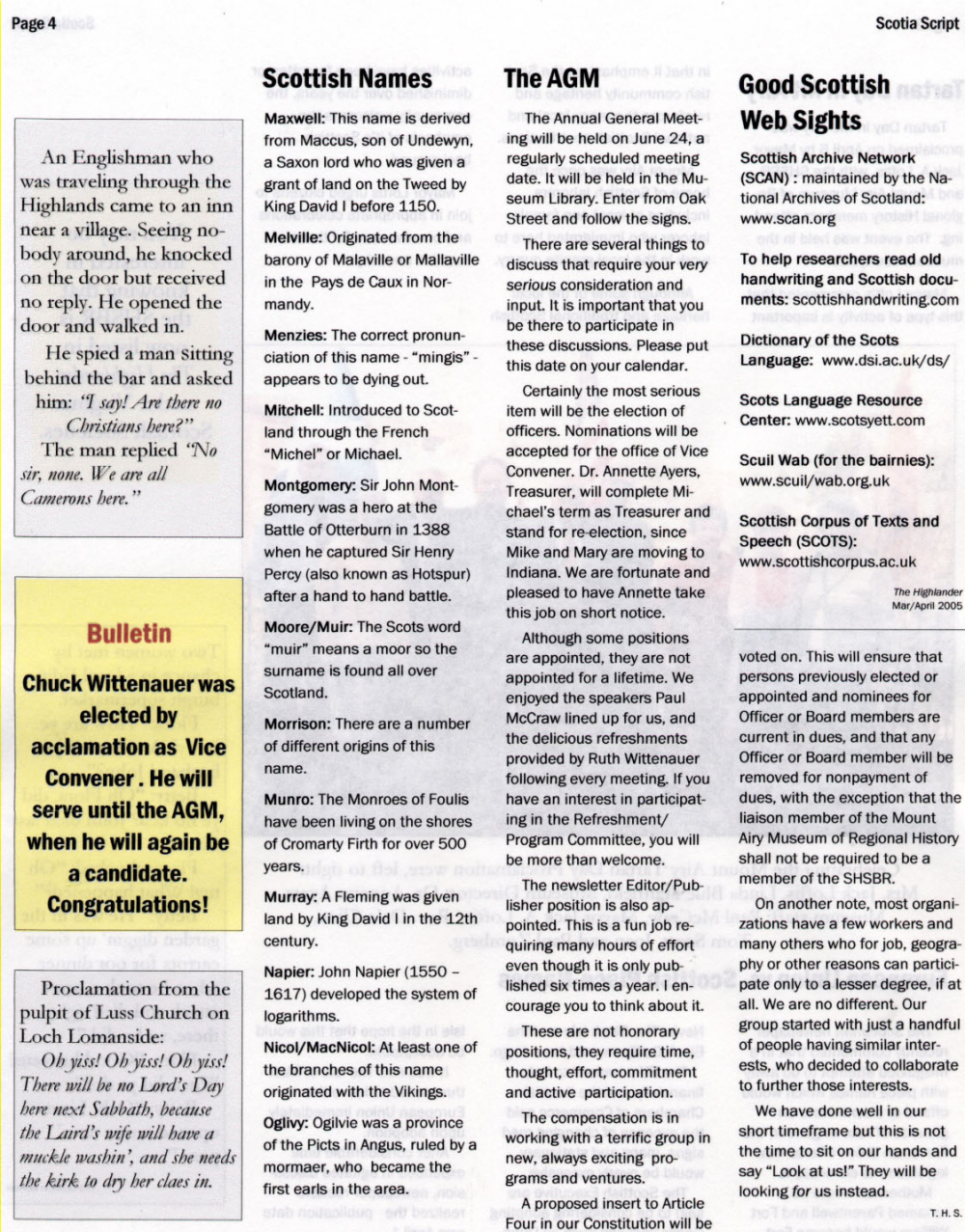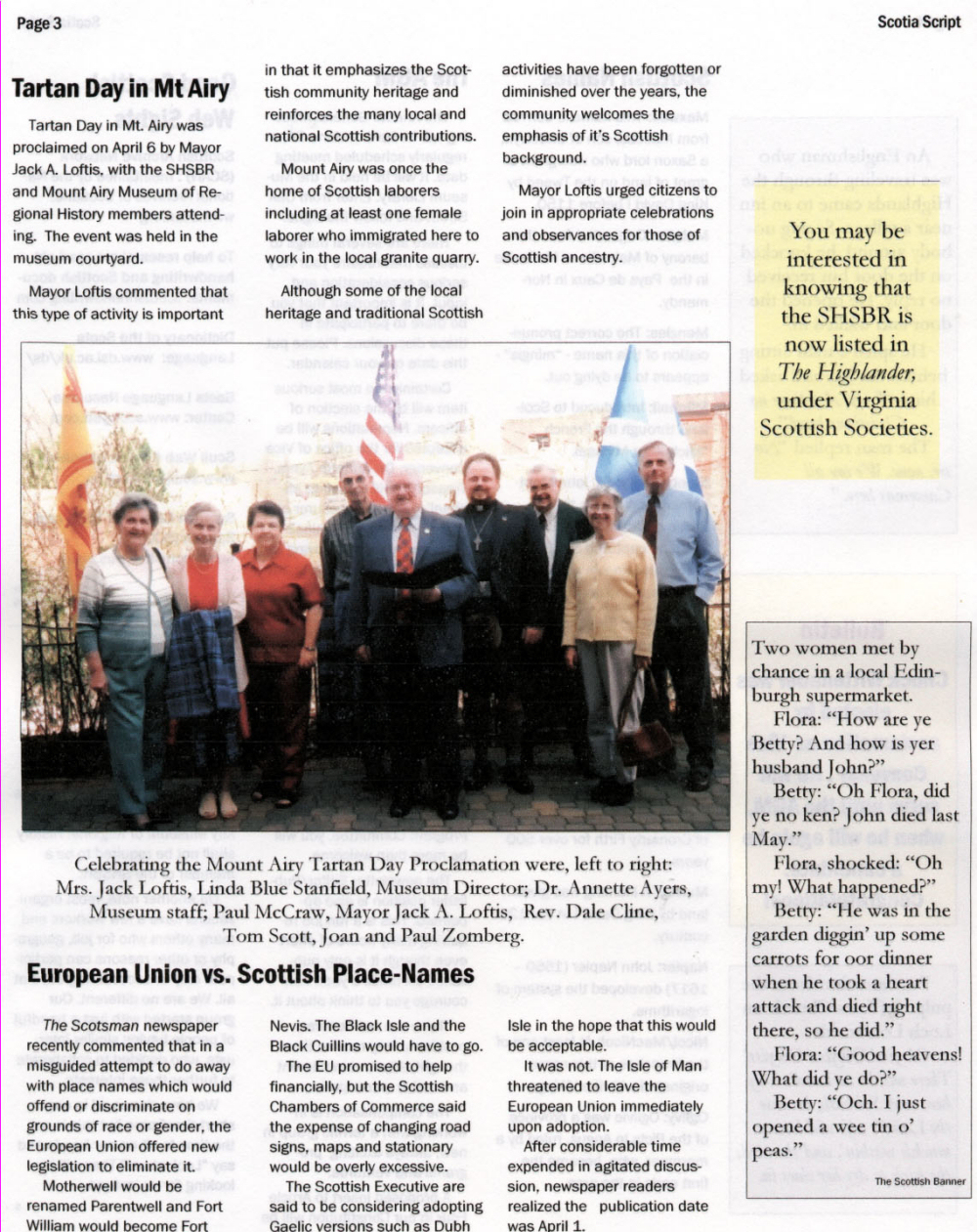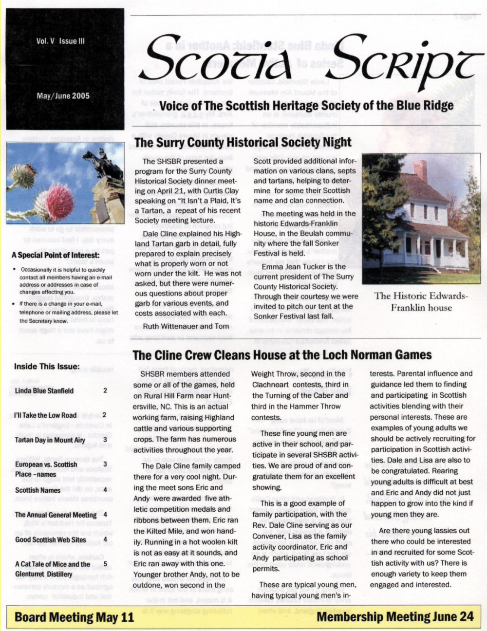 The Voice of the Scottish Heritage Society of the Blue Ridge