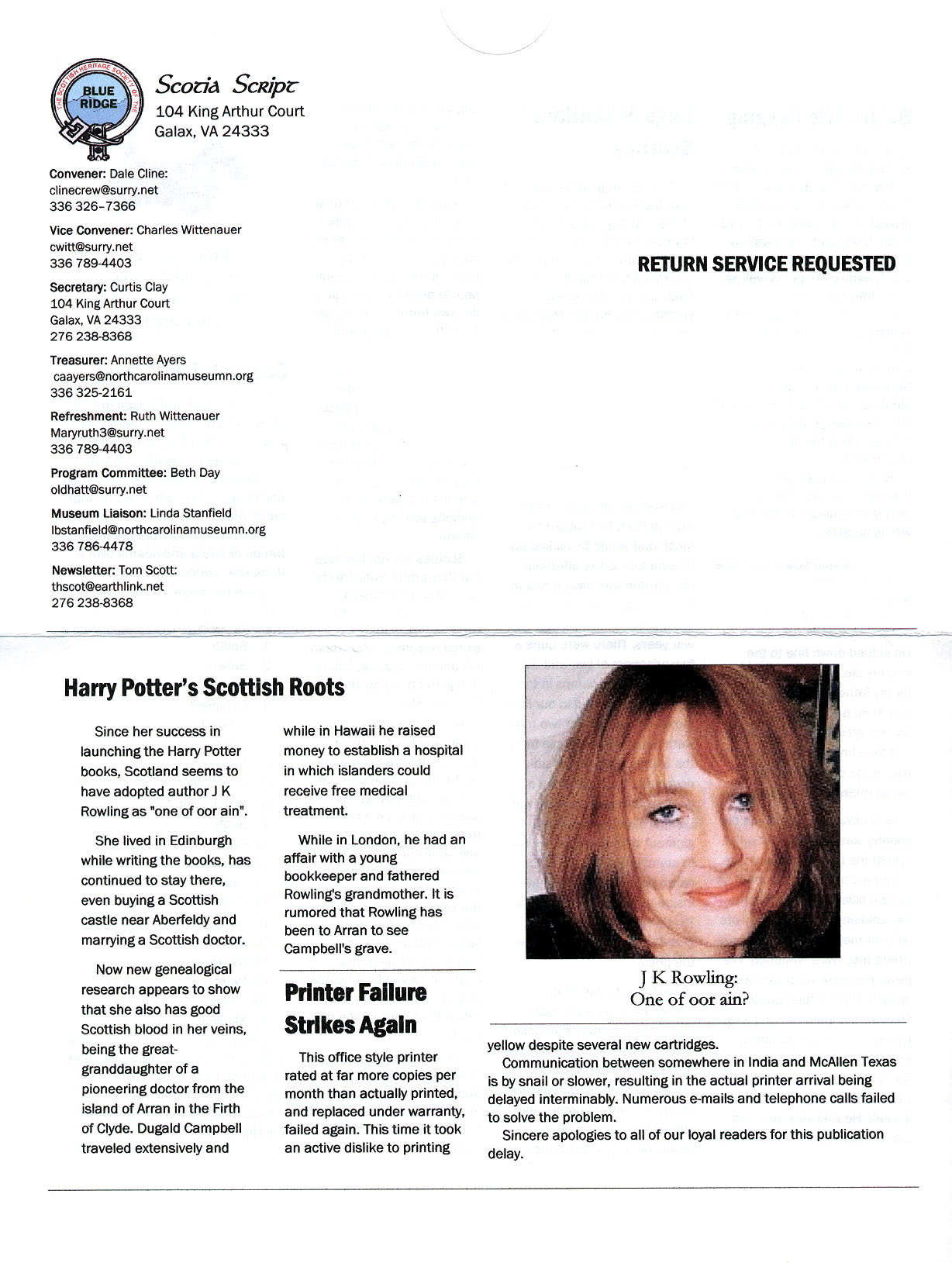 The Voice of the Scottish Heritage Society of the Blue Ridge