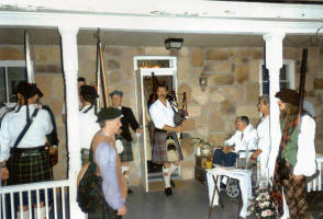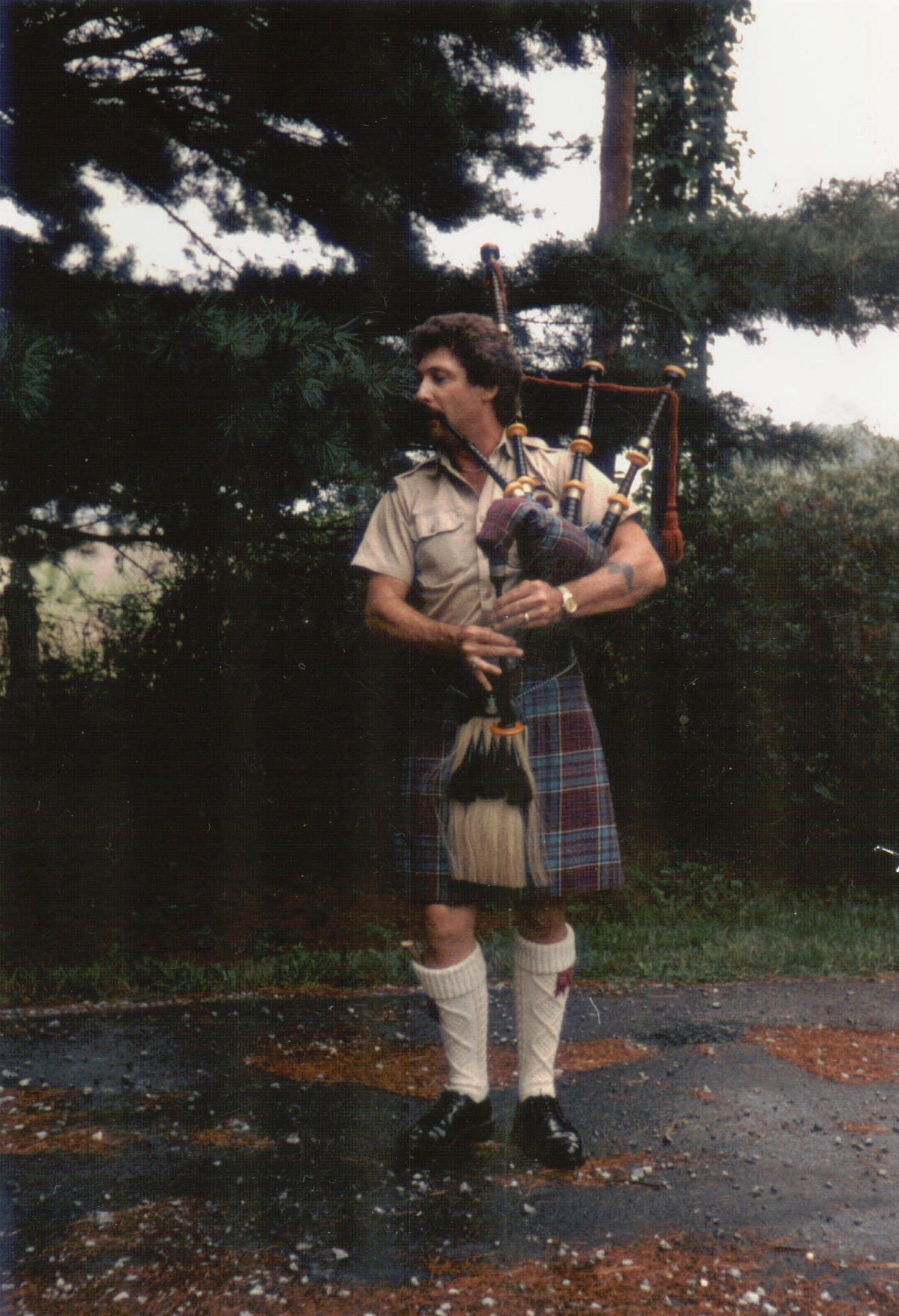 Pipe Band, in kilts and wearing skull caps. Wonderful!!
