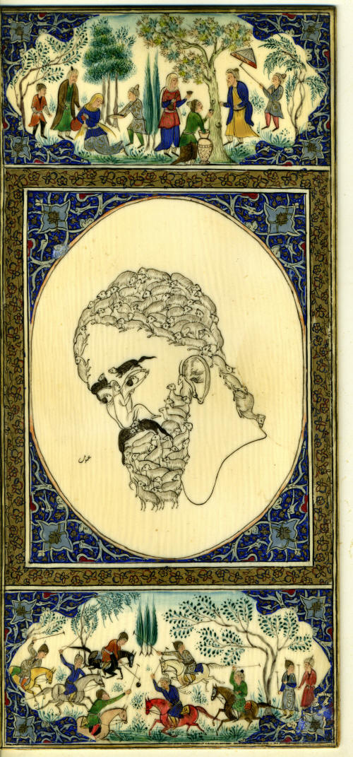scenes at top and bottom are ubiquitous in Persian art, and that the figure in