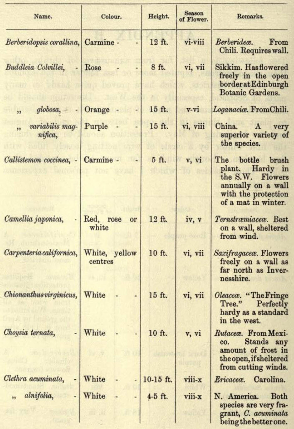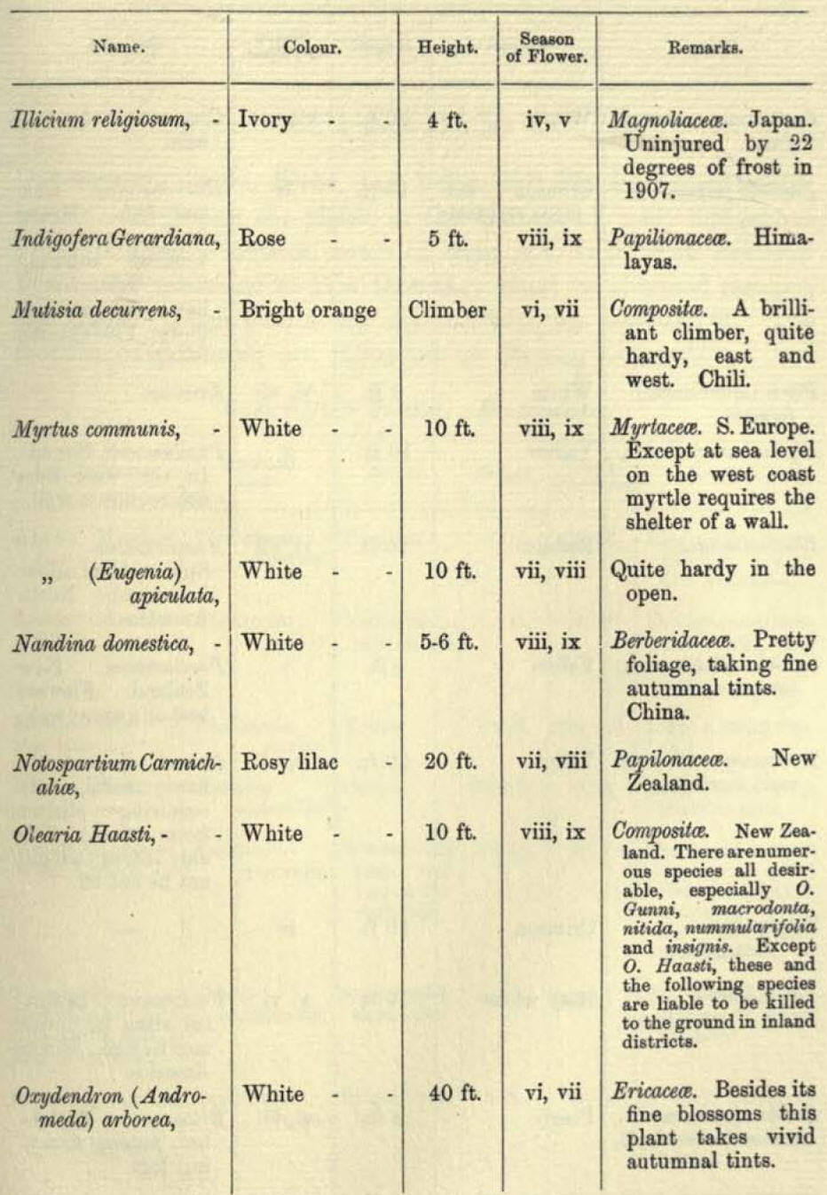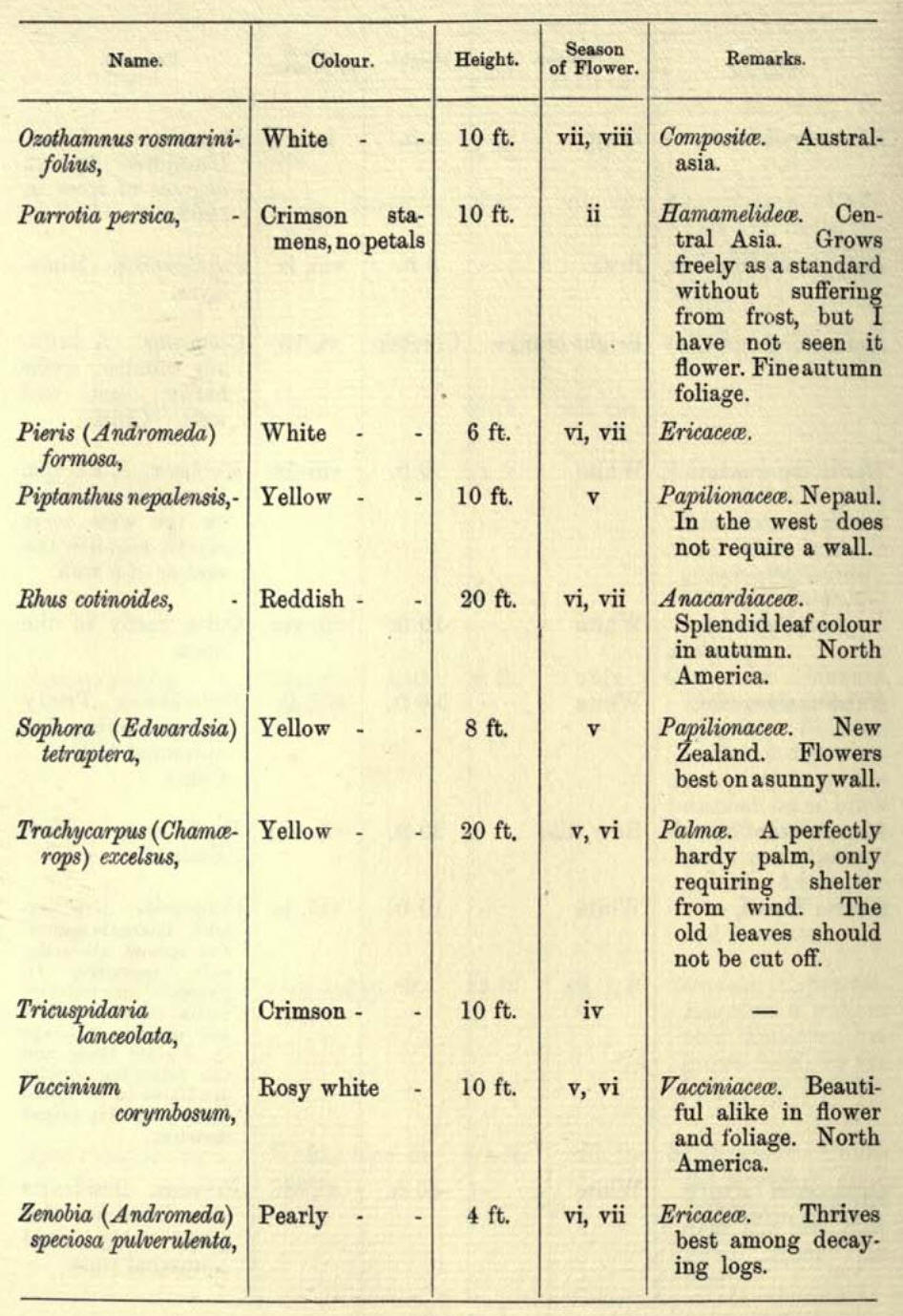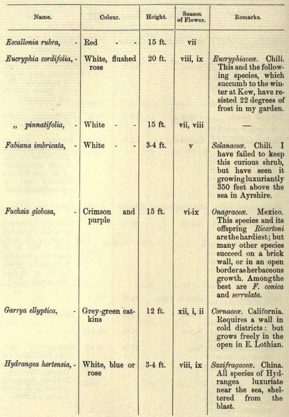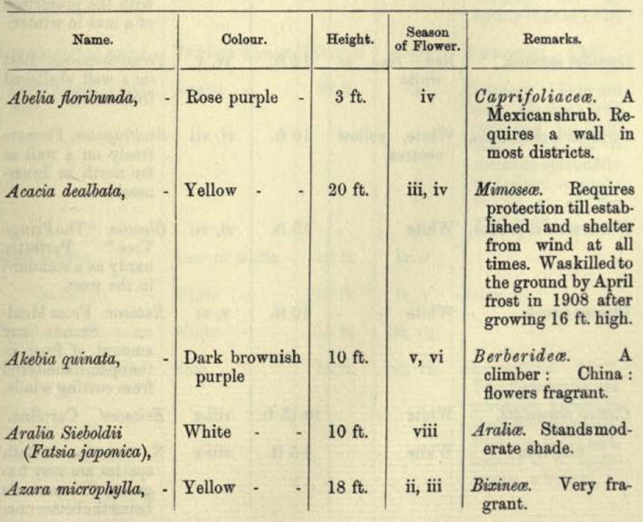 far from exhaustive, of shrubs, other than rhododendrons, reputed more