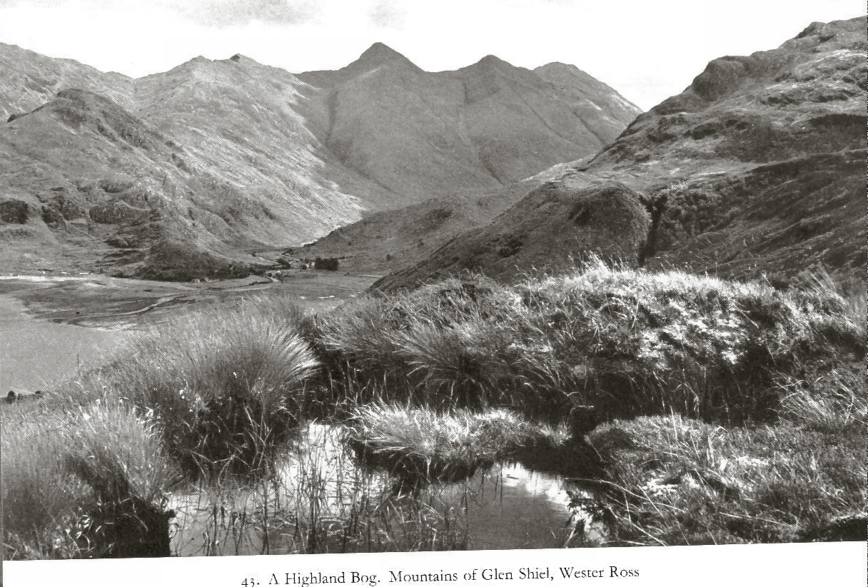 low-lying plateaux, such an Rannoch Moor, the bottoms of valleys, the